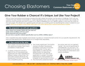 Elastomer selection is a critical decision process when you need material to stand up to a given set of environmental conditions. Let one of Aero’s experienced Sales Engineers assist by providing you options from which to choose and the advantages and limitations of each. Arm yourself with the information needed to make an informed selection. The elastomer selection chart below contains key information. Use it as a guide when selecting an elastomer that will work best for your project.